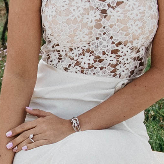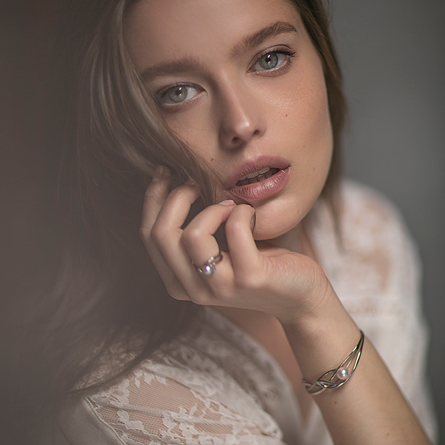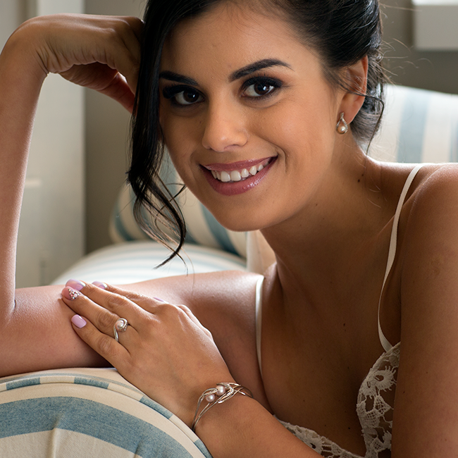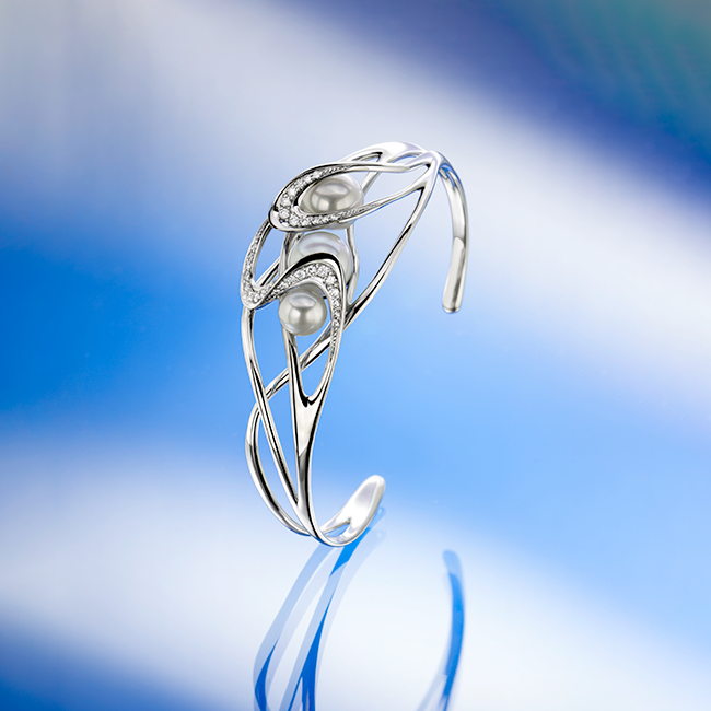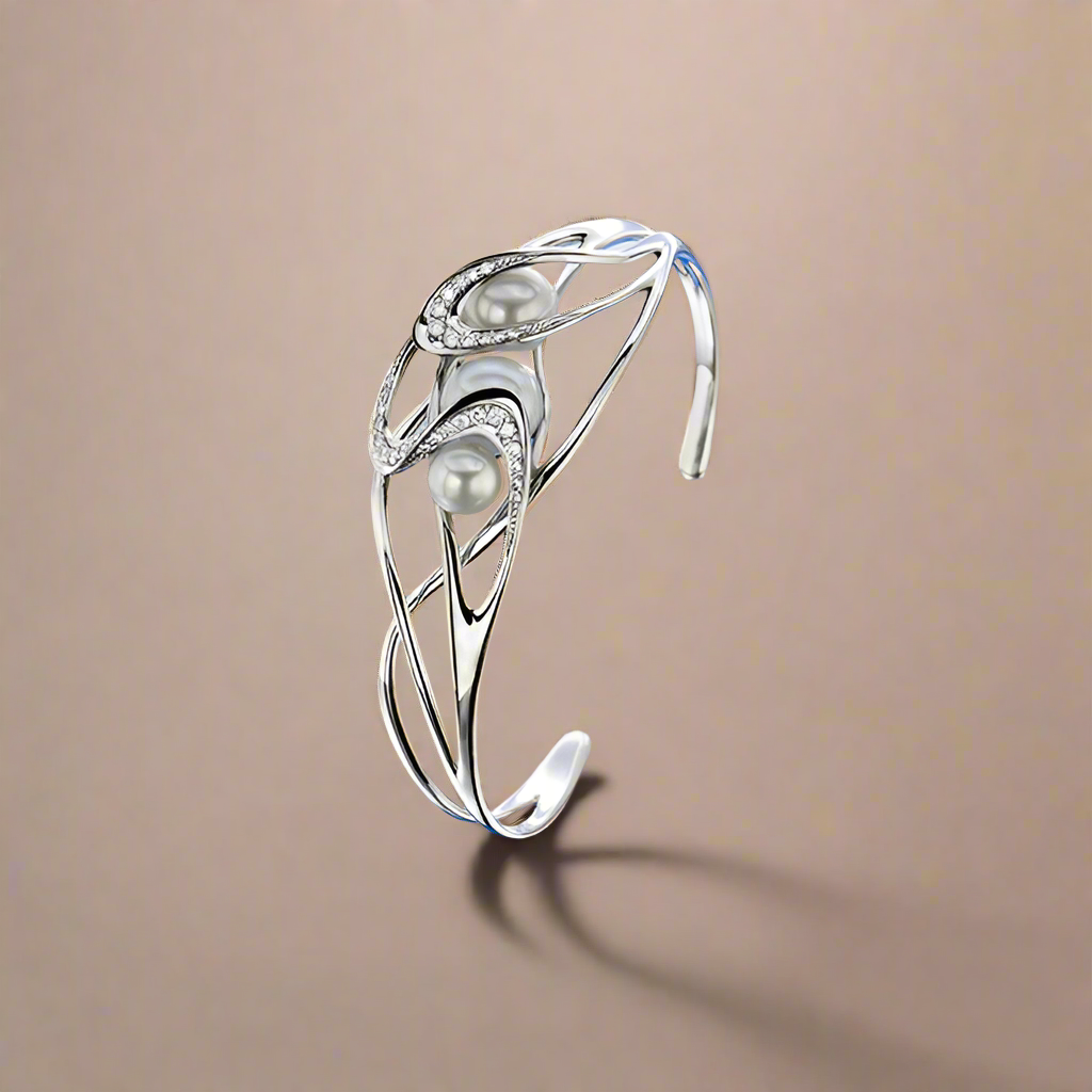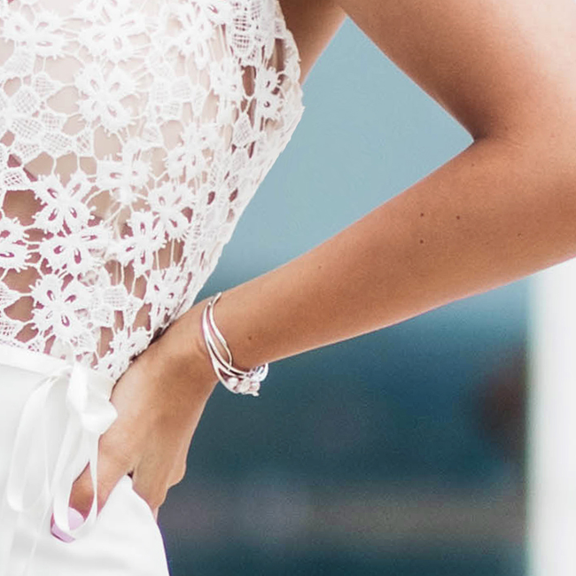 Könnyed, légies fazonnal rendelkező fehér arany karkötő elegáns rózsaszín gyönggyel