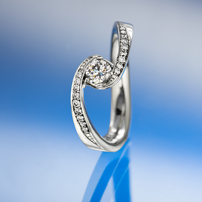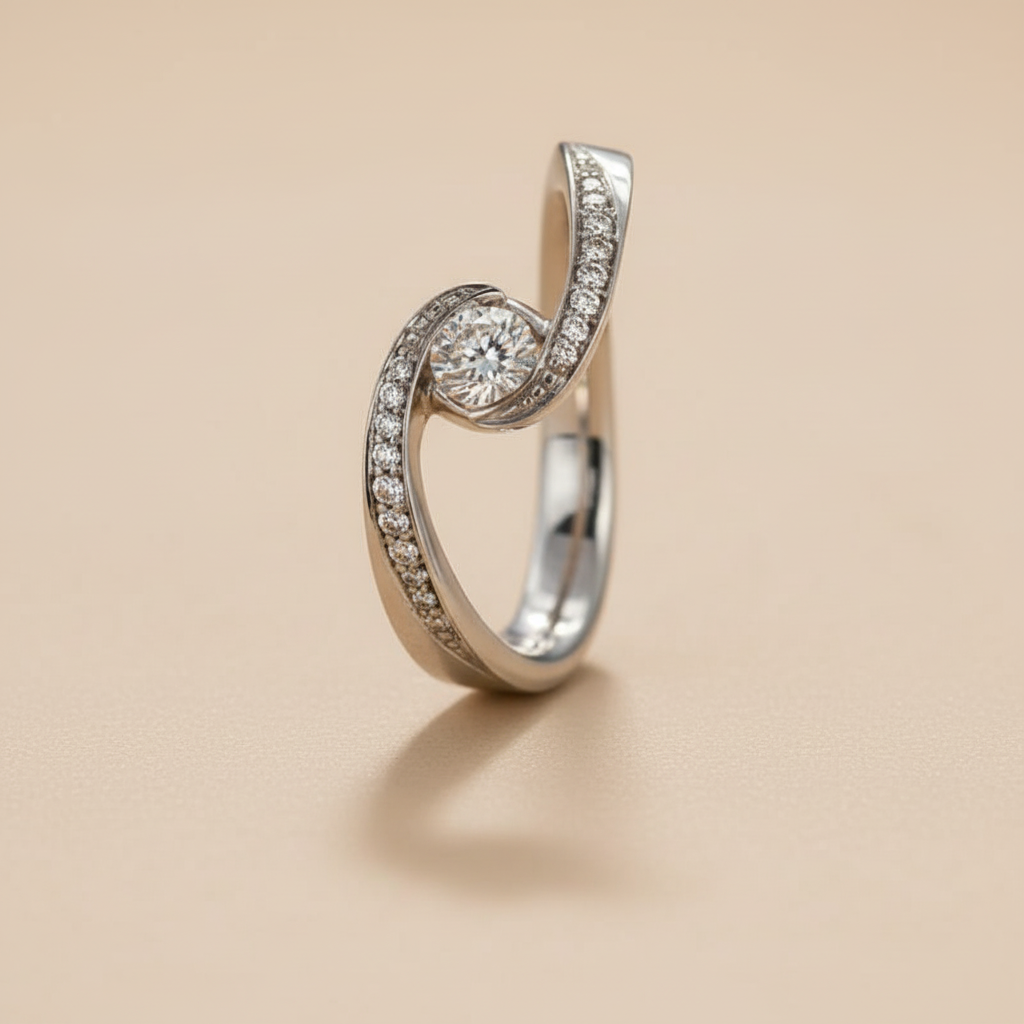 Klasszikus vonalvezetésű fehér arany eljegyzési gyűrű briliáns csiszolású gyémántokkal díszítve