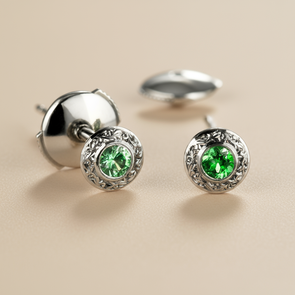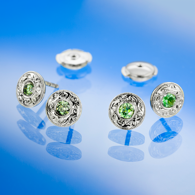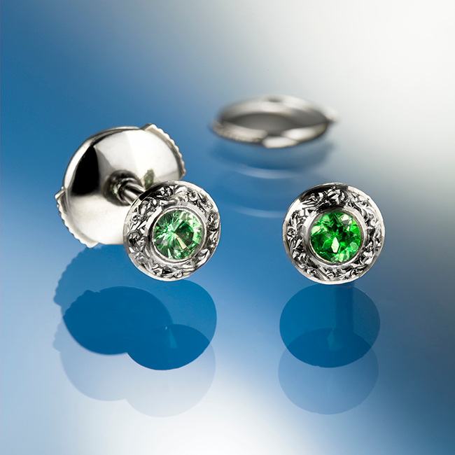 Classically elegant white gold earrings with special green tsavorite stones. A perfect choice for everyday wear and special occasions.