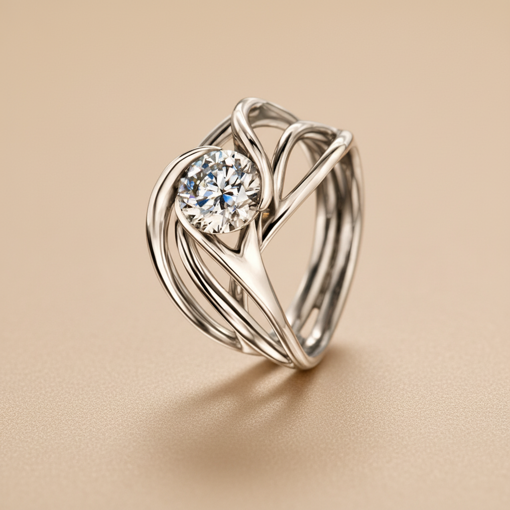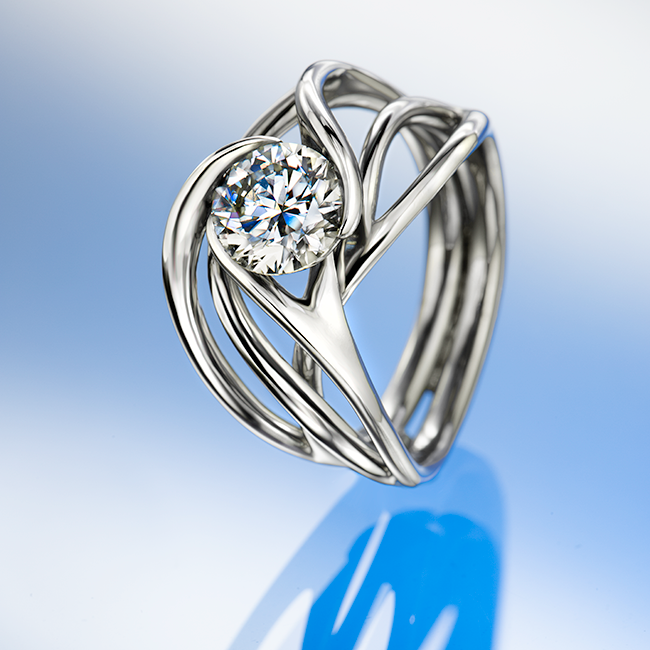 A ring created from the connection of intertwined vines with premium quality brilliant-cut diamonds