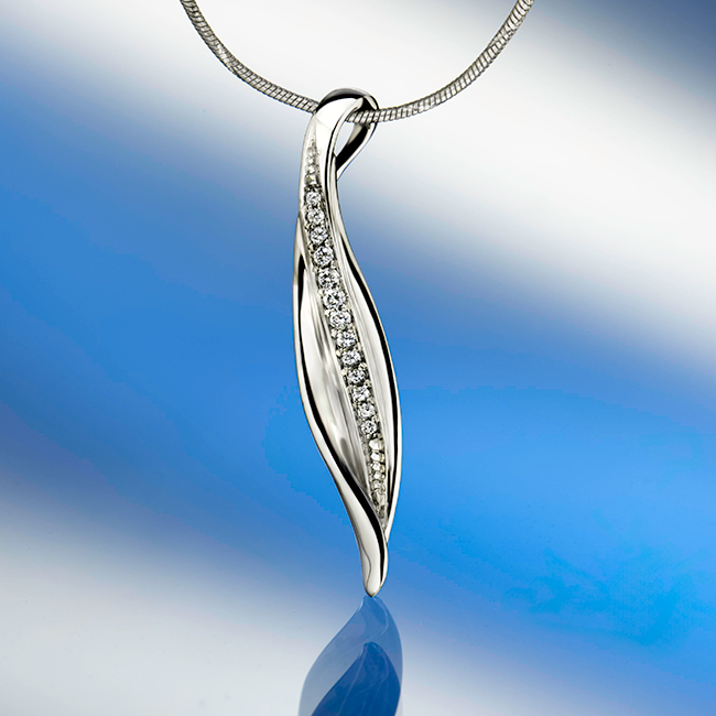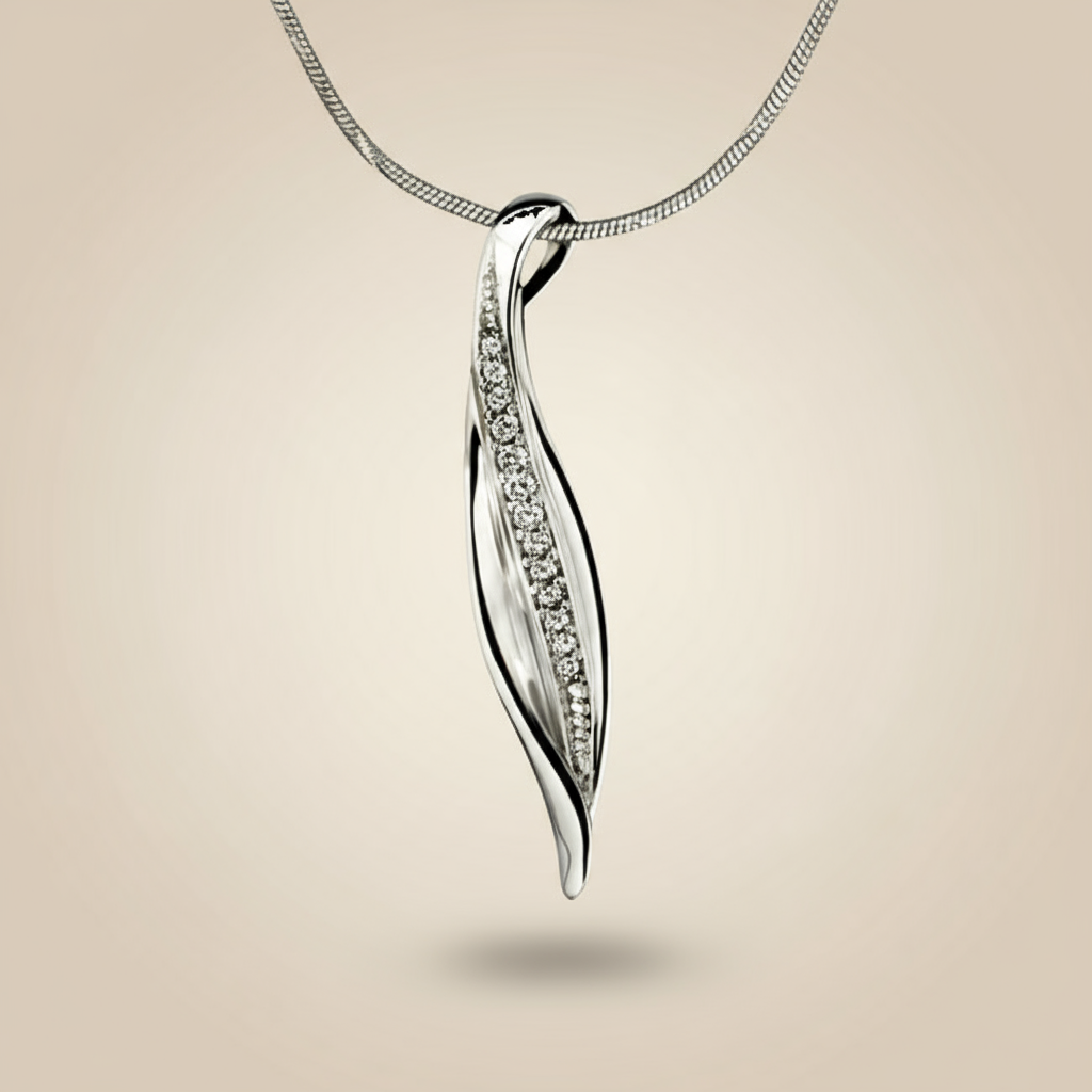 A filigree, light pendant with the beauty of nature, sprinkled with small brilliant-cut diamonds