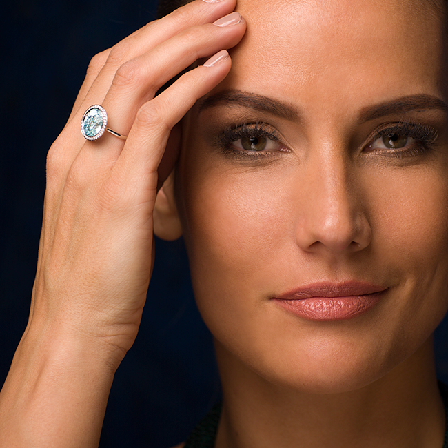 Spectacular cocktail ring decorated with sky blue zircons and brilliant-cut diamonds - it's a dress in itself
