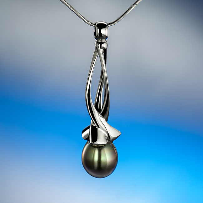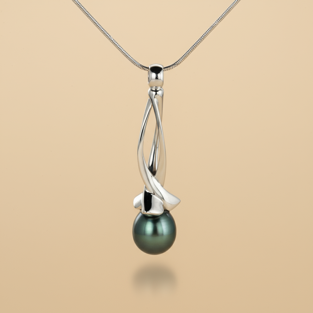 Organikus formavilággal rendelkező fehér arany medál tahiti gyönggyel