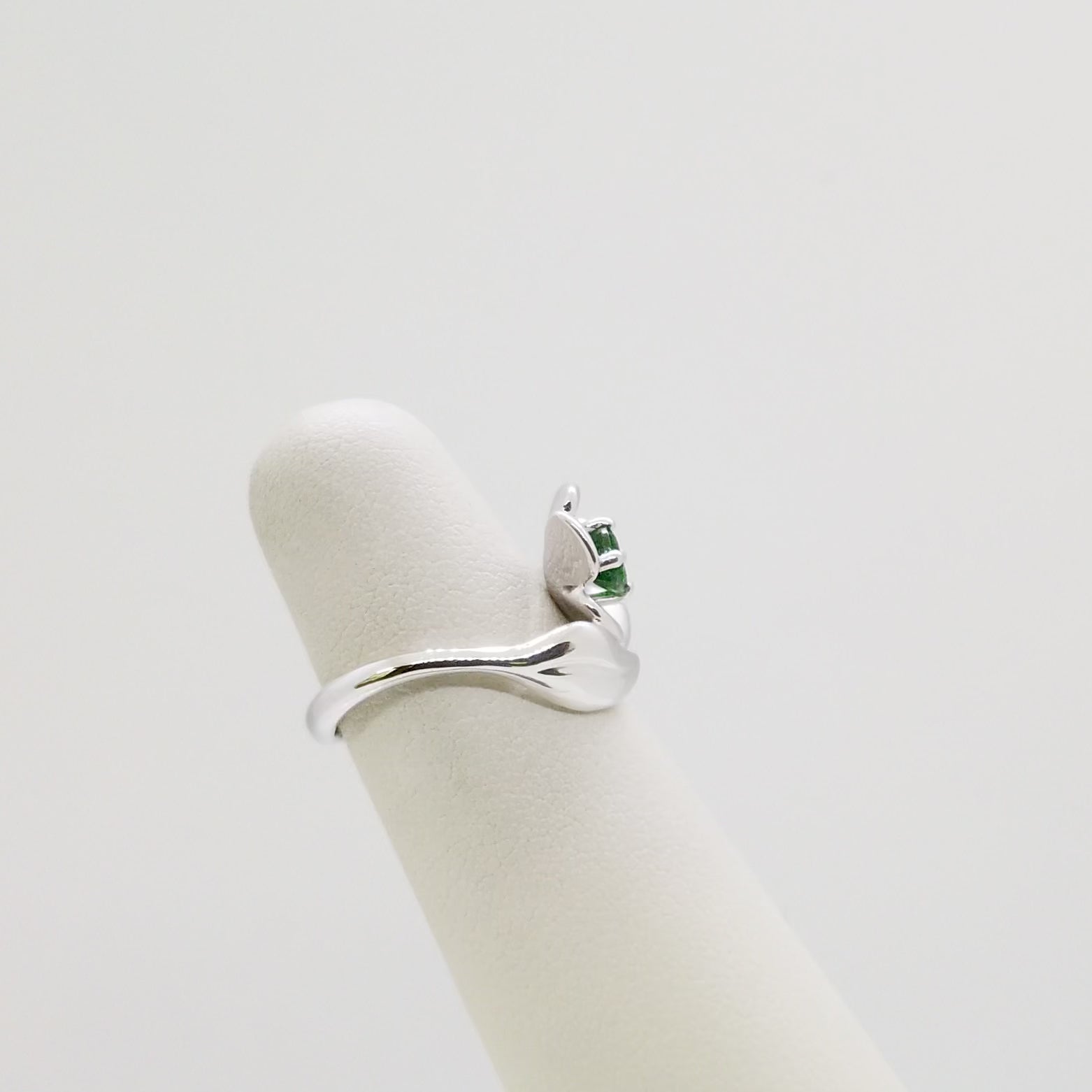 Százszorszép ihletésű fehér arany gyűrű zöld tsavorittal