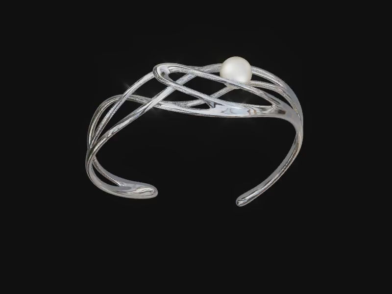 Könnyed, légies fazonnal rendelkező fehér arany karkötő elegáns rózsaszín gyönggyel