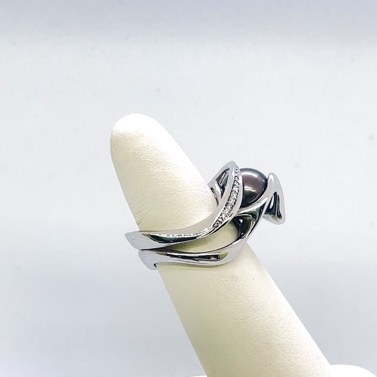 Pearlith gyűrű - 14k, fehér arany, gyémántok, tahiti gyöngy