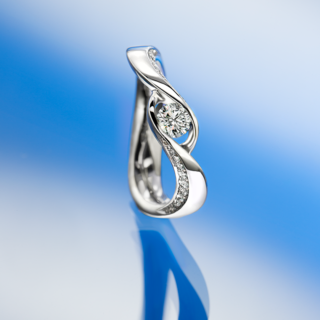 Klasszikus, egyszerű fazonú fehér arany gyűrű öleli körbe a kiváló minőségű gyémántot. Szélei apró, briliáns csiszolású gyémántokkal díszítettek.