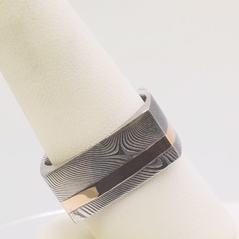 Katana gyűrű - damaszkuszi acél, 14k, rozé arany