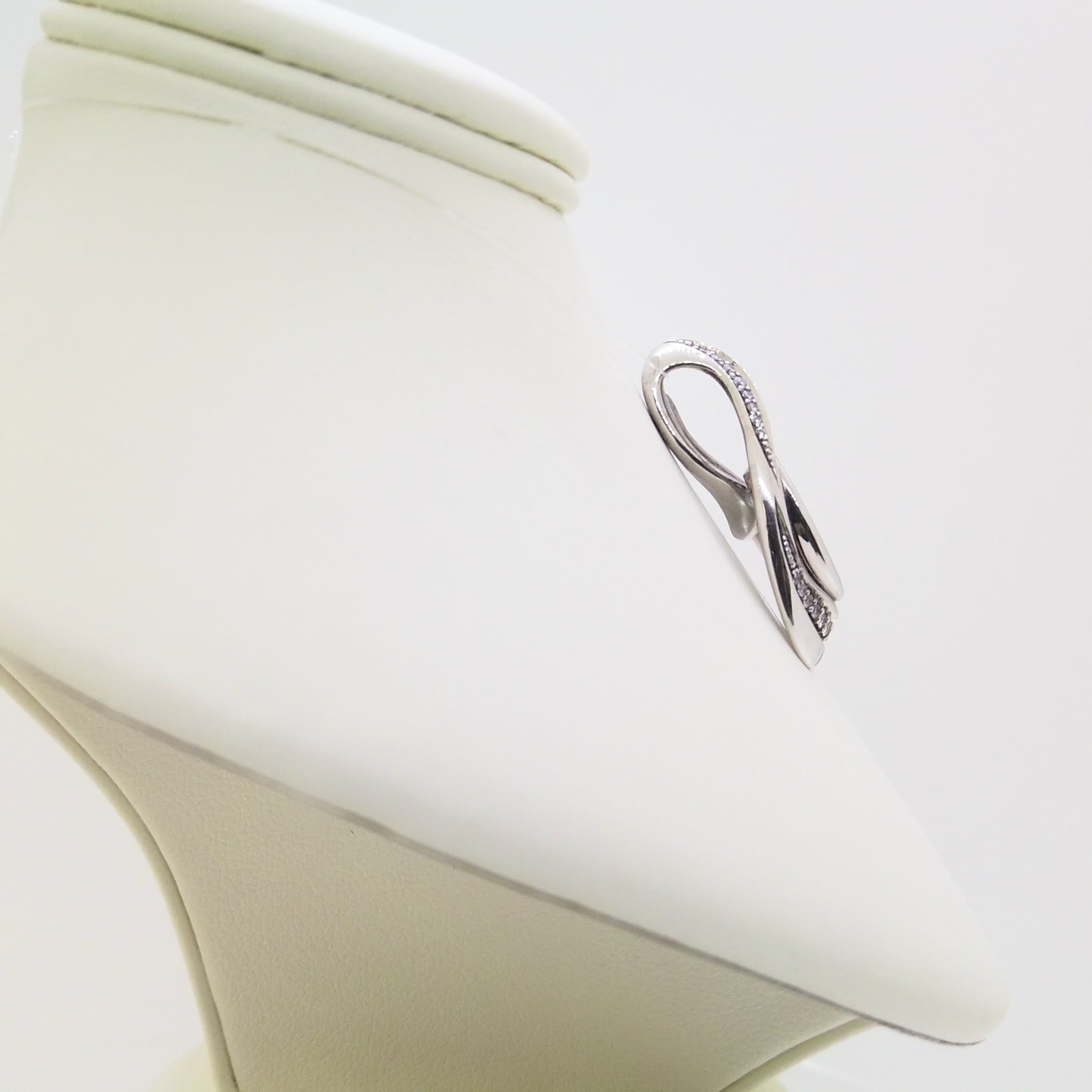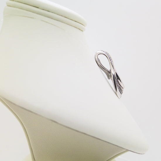 Egy letisztult formavilágú fehér arany medál, mely egy fantázia csiszolt kék akvamarint és briliáns csiszolású gyémántokat tartalmaz.