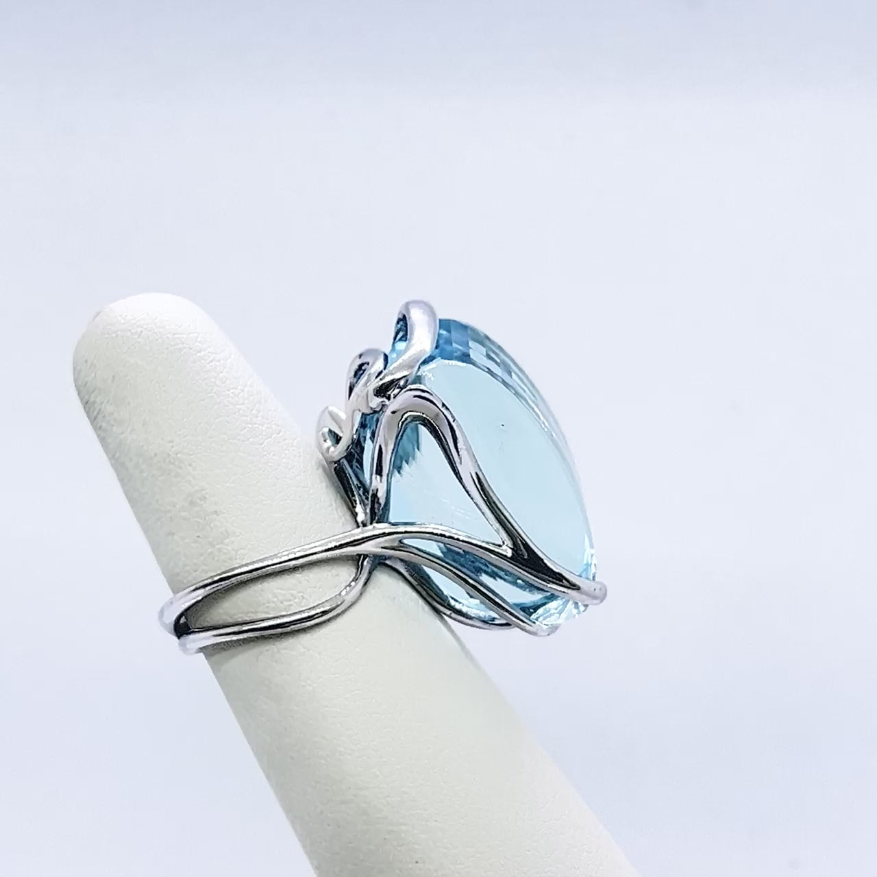 Pool cocktail gyűrű - 14k, fehér arany, akvamarin