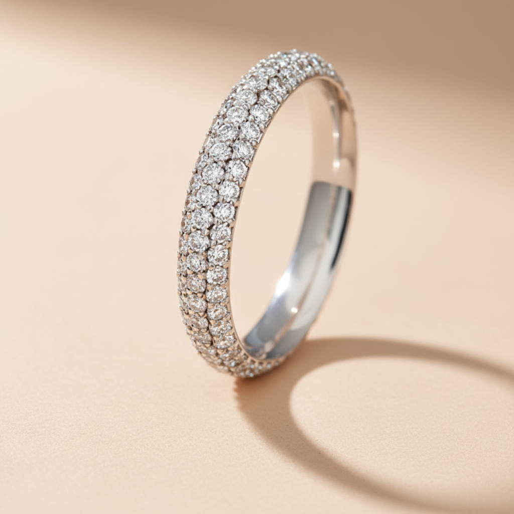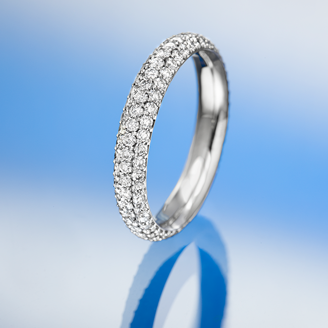 Egyszerű, geometrikus karikagyűrű fazon briliáns csiszolású gyémántokkal díszítve