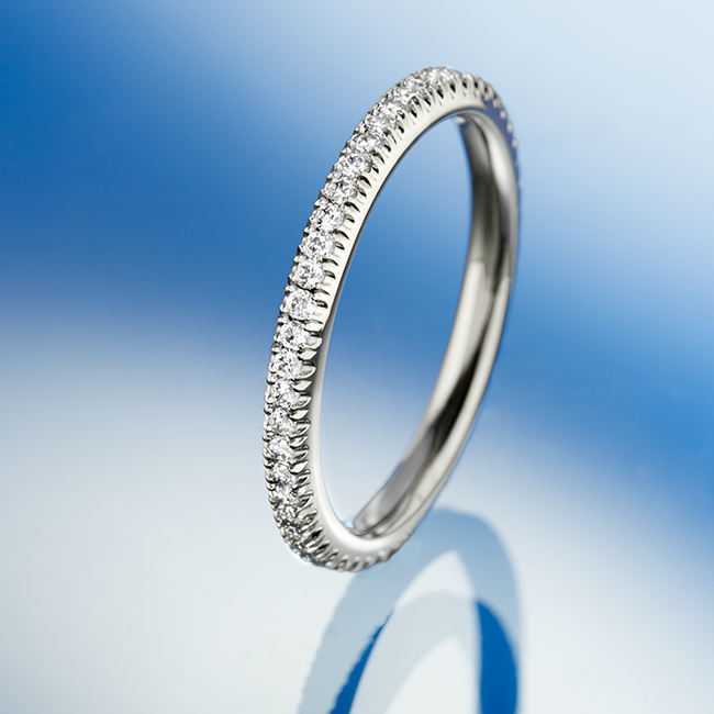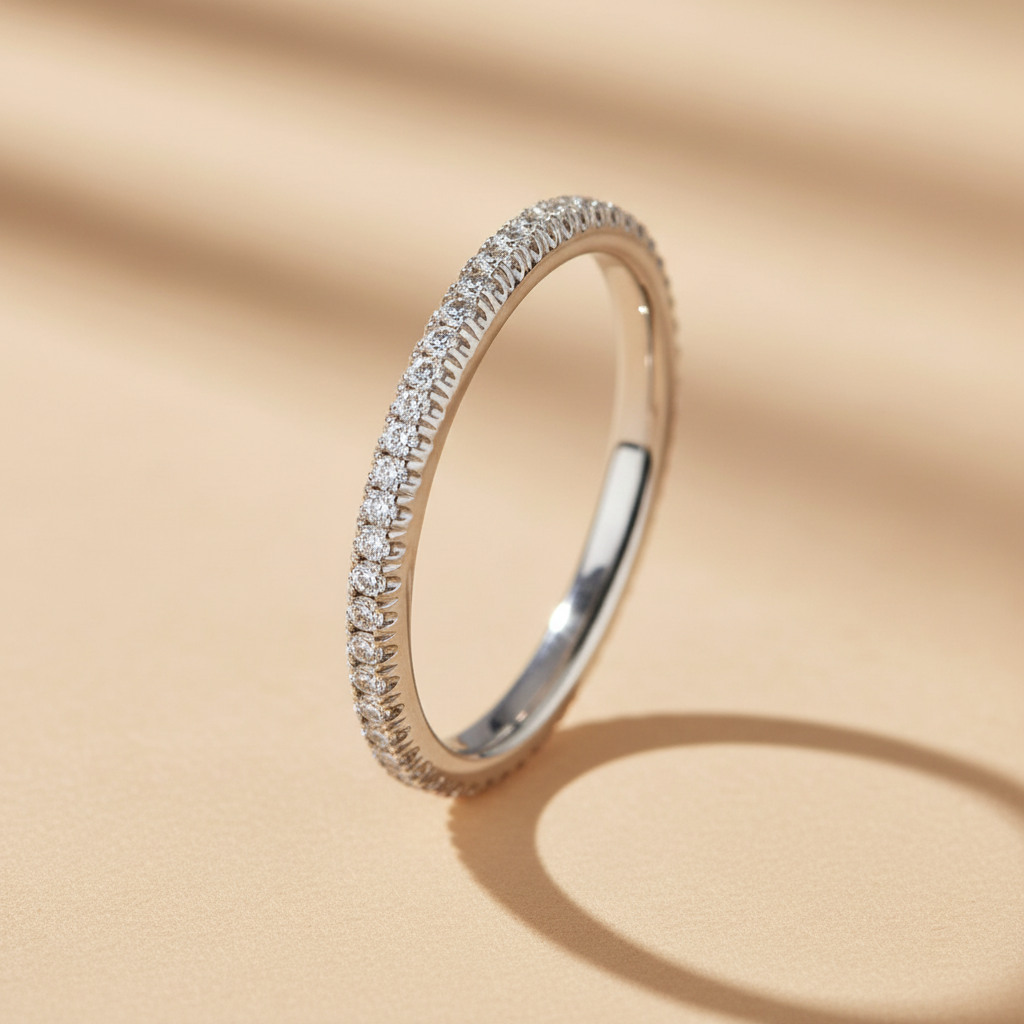 Egyszerű, geometrikus karikagyűrű fazon briliáns csiszolású gyémántokkal díszítve