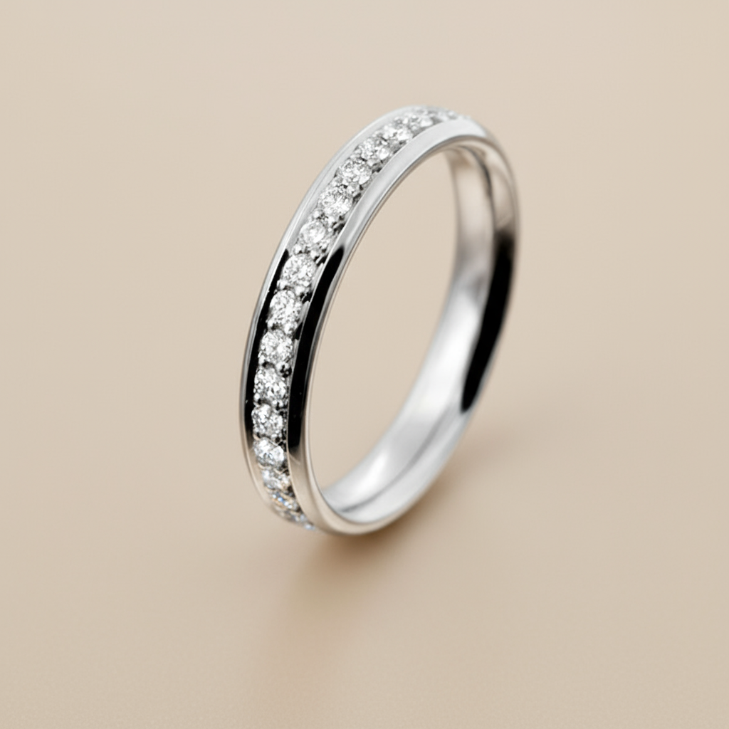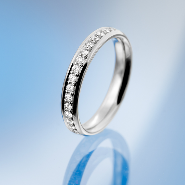Egyszerű, geometrikus karikagyűrű fazon briliáns csiszolású gyémántokkal díszítve