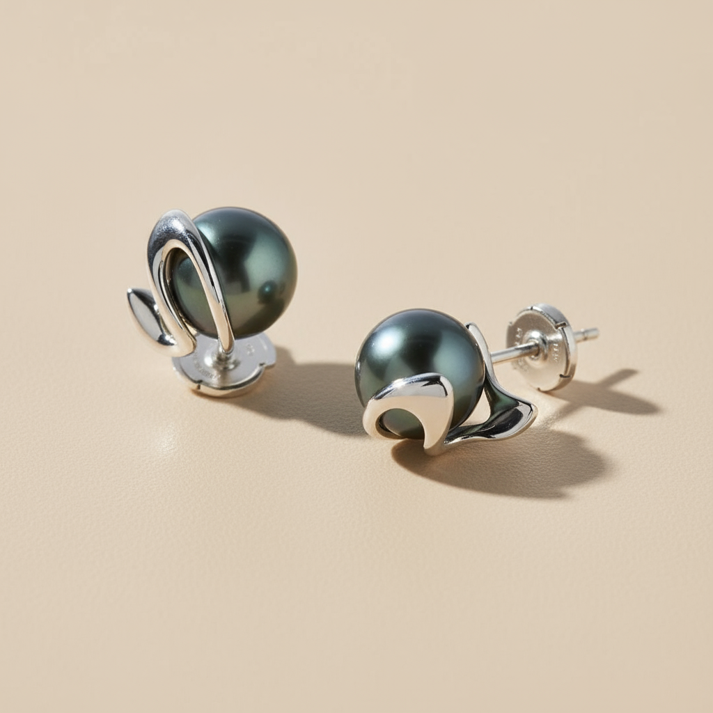 Pearl Noire fülbevaló - 18k, fehér arany, tahiti gyöngy