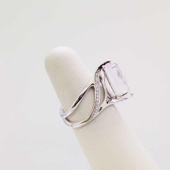 Thin Rose gyűrű - 14k, fehér arany, gyémántok, kunzite