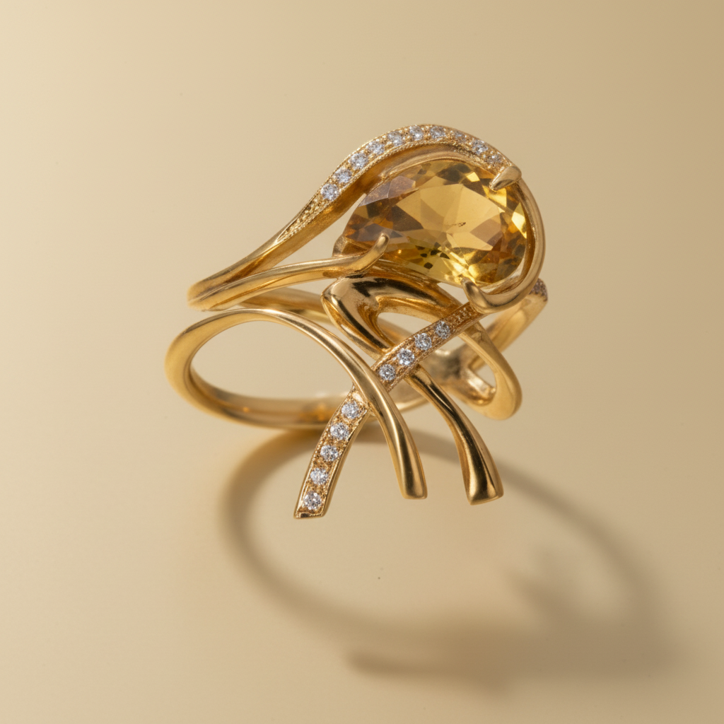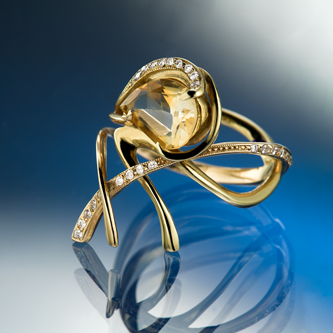 Whirlpool of Flame gyűrű - 18k, sárga és rozé arany, citrin, gyémántok